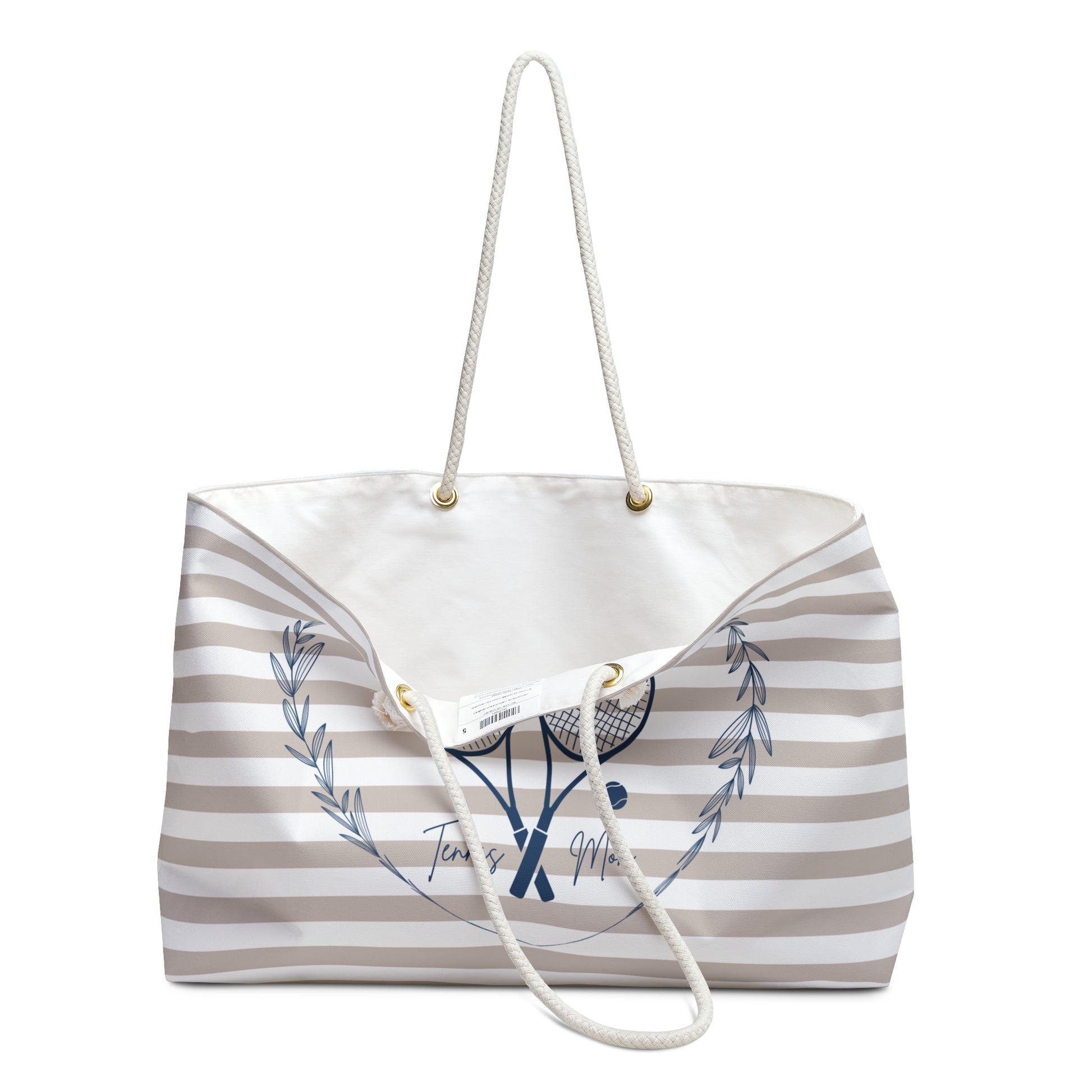 Crafted from 100% spun polyester, it resists wrinkles and holds its shape — no ironing needed. The wide opening makes it easy to pack diapers, bottles, snacks, toys, and more. Soft cotton rope handles (27" long) looped through gold-tone grommets add comfort and subtle elegance for every outing.
