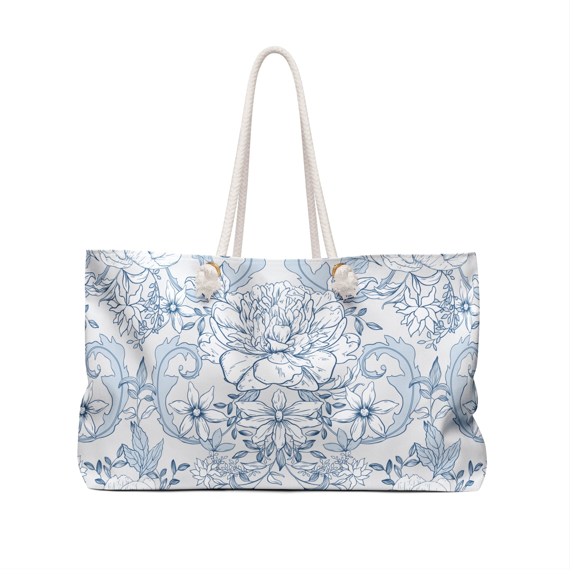 Crafted from 100% spun polyester, it resists wrinkles and holds its shape, no ironing needed. The wide opening makes it easy to pack diapers, bottles, snacks, toys, and more. Soft cotton rope handles (27" long) looped through gold-tone grommets add comfort and subtle elegance for every outing.