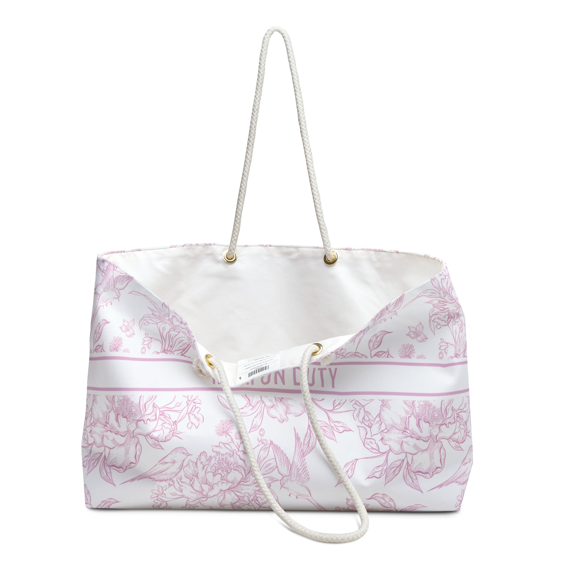 Crafted from 100% spun polyester, it resists wrinkles and holds its shape — no ironing needed. The wide opening makes it easy to pack diapers, bottles, snacks, toys, and more. Soft cotton rope handles (27" long) looped through gold-tone grommets add comfort and subtle elegance for every outing.