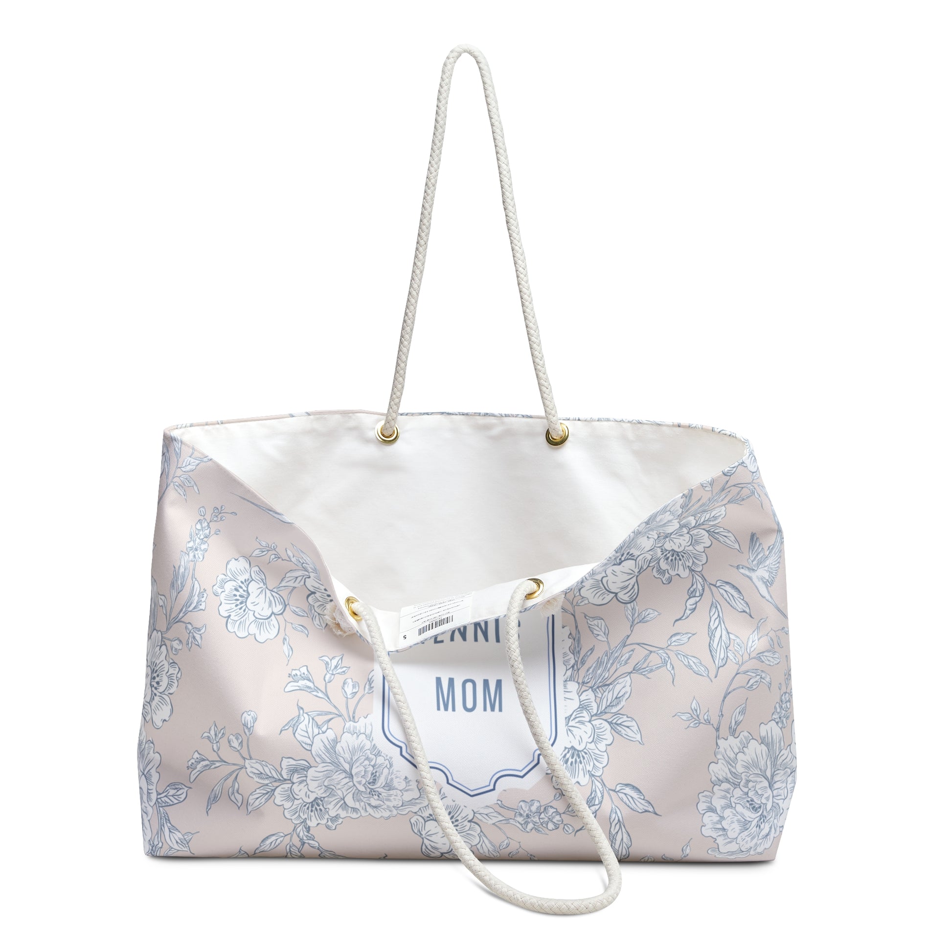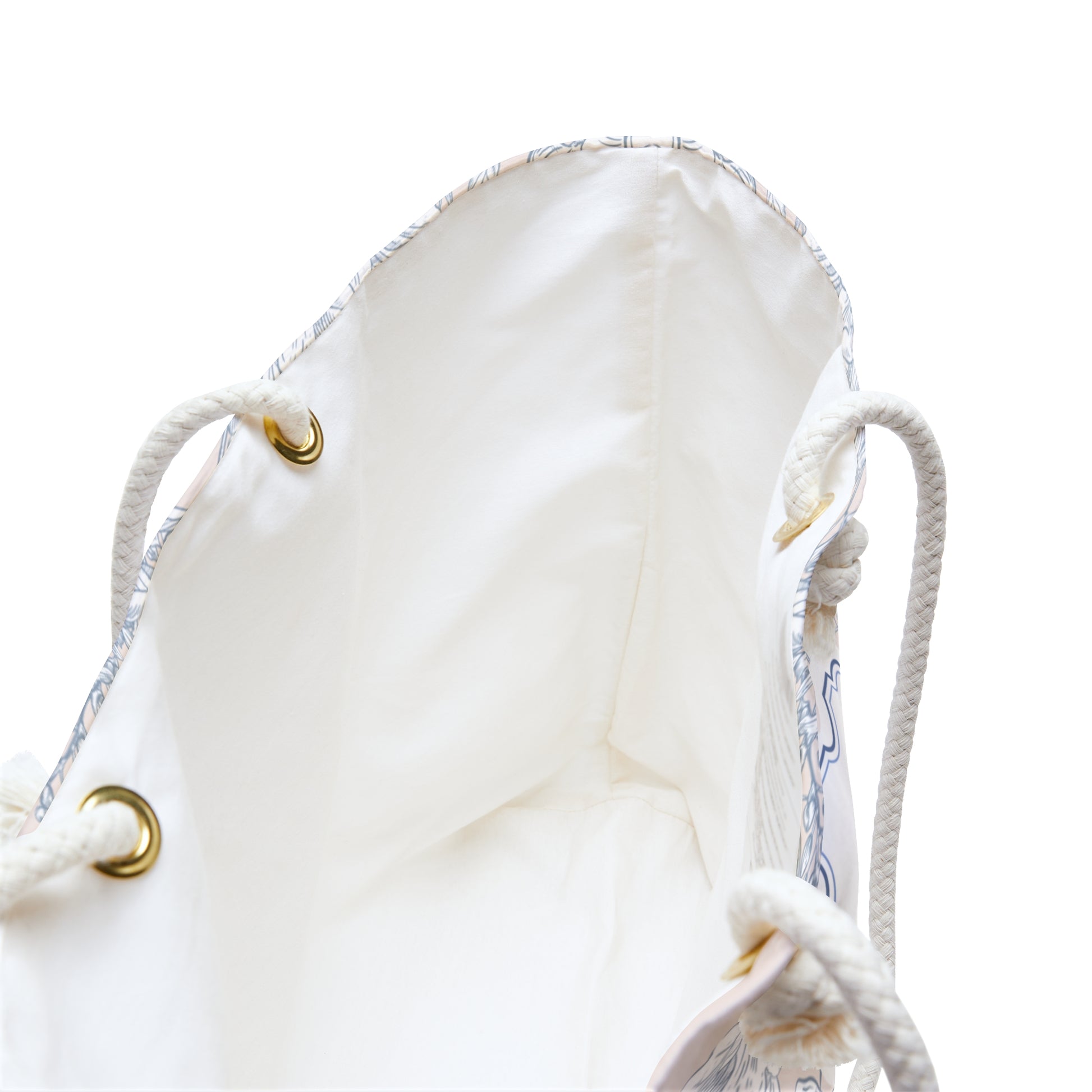Crafted from 100% spun polyester, it resists wrinkles and holds its shape — no ironing needed. The wide opening makes it easy to pack diapers, bottles, snacks, toys, and more. Soft cotton rope handles (27" long) looped through gold-tone grommets add comfort and subtle elegance for every outing.
