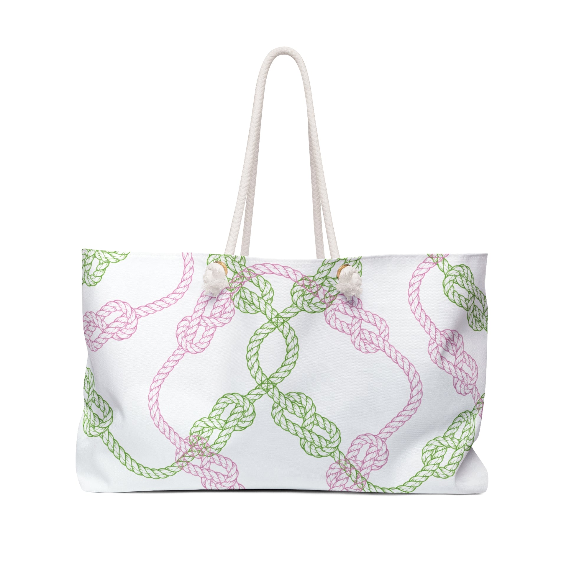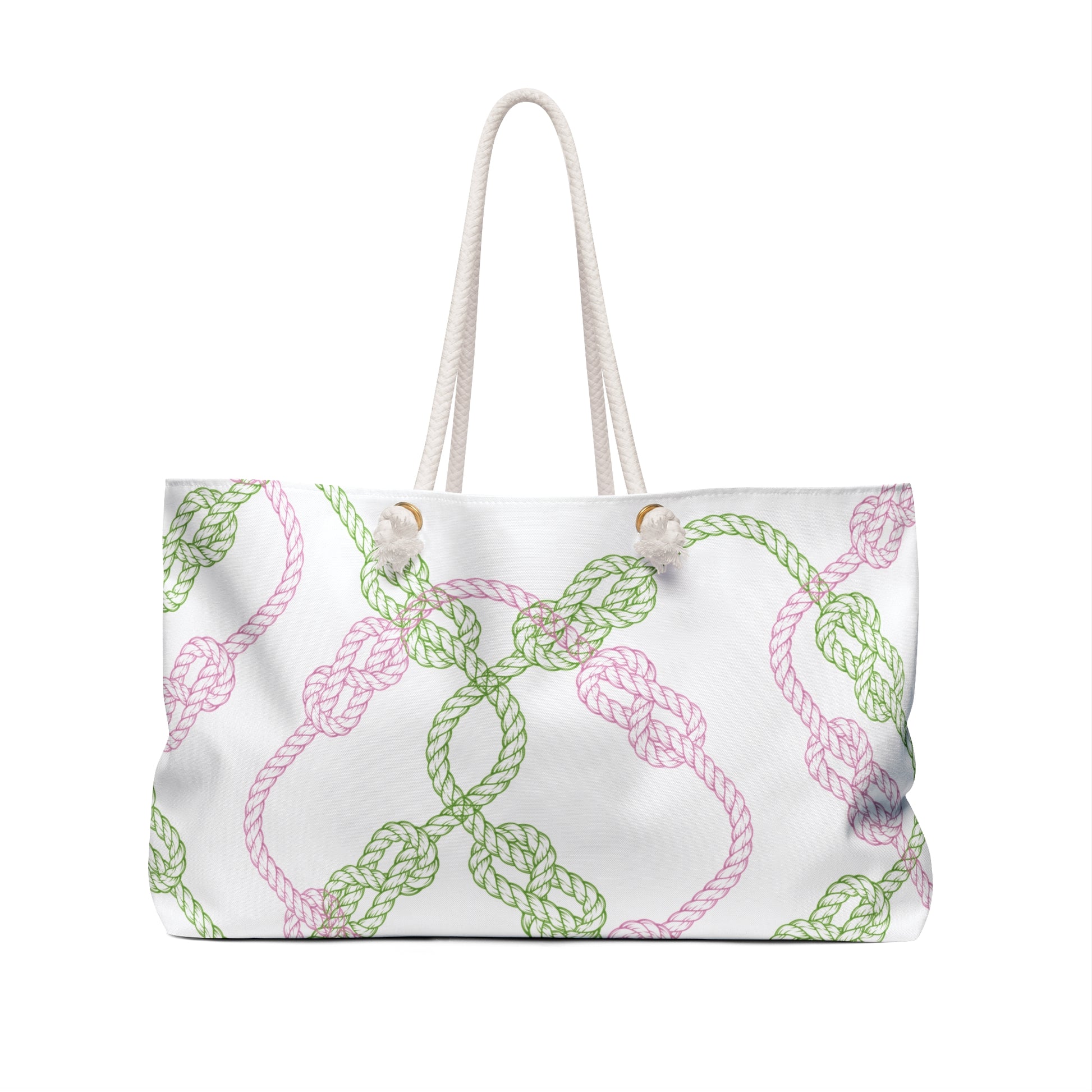 Crafted from 100% spun polyester, it resists wrinkles and holds its shape, no ironing needed. The wide opening makes it easy to pack diapers, bottles, snacks, toys, and more. Soft cotton rope handles (27" long) looped through gold-tone grommets add comfort and subtle elegance for every outing.